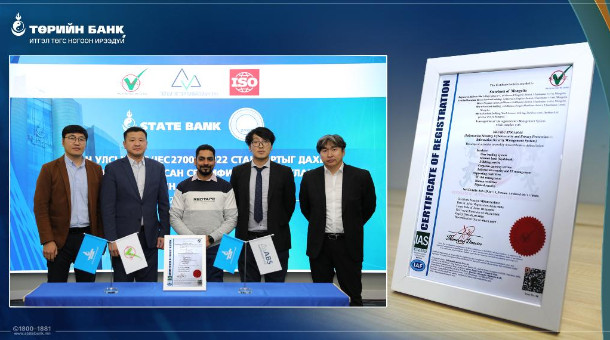 Төрийн банк ISO/IEC 27001:2022 стандартыг дахин баталгаажууллаа