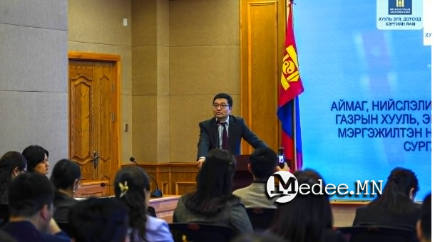 Хууль зүй дотоод хэргийн яам аймаг, нийслэл, дүүргийн Засаг даргын Тамгын газрын Хууль, эрх зүйн хэлтсийн дарга, мэргэжилтэн нарт зориулсан сургалт-семинарыг 2025 оны 11 дүгээр сарын 13-14-ны өдрүүдэд зохион байгуулж байна.