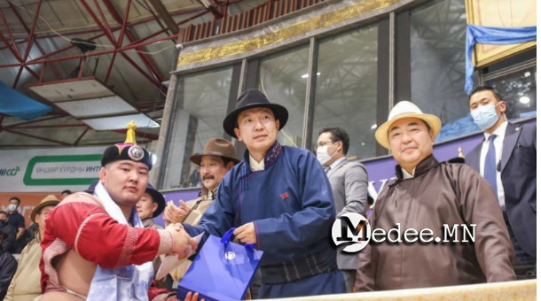 Бүгд Найрамдах Улсын 101 жилийн ойд зориулсан үндэсний бөхийн барилдаанд түрүүлж, үзүүрлэсэн болон их шөвөгт шалгаран үлдсэн бөхчүүдэд Улсын Их Хурлын дарга Н.Учрал бай шагналыг гардуулж баяр хүргэлээ.