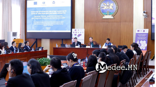 Улсын Их Хурлын Хууль зүйн байнгын хороо, Олон улсын эрх зүйн хөгжлийн байгууллага (ОУЭЗХБ)-аас Европын Холбооны санхүүжилттэй Европын Сэргээн Босголт Хөгжлийн Банктай хамтран хэрэгжүүлж буй “Монгол Улсад арилжааны эвлэрүүлэн зуучлалыг бэхжүүлэх нь” (2023-2025) төслийн хүрээнд олон улсын онол, практикийн хэлэлцүүлэг болов. Энэ үеэр энэ сэдвээр хэн, юу хэлснийг тоймлон хүргэж байна.