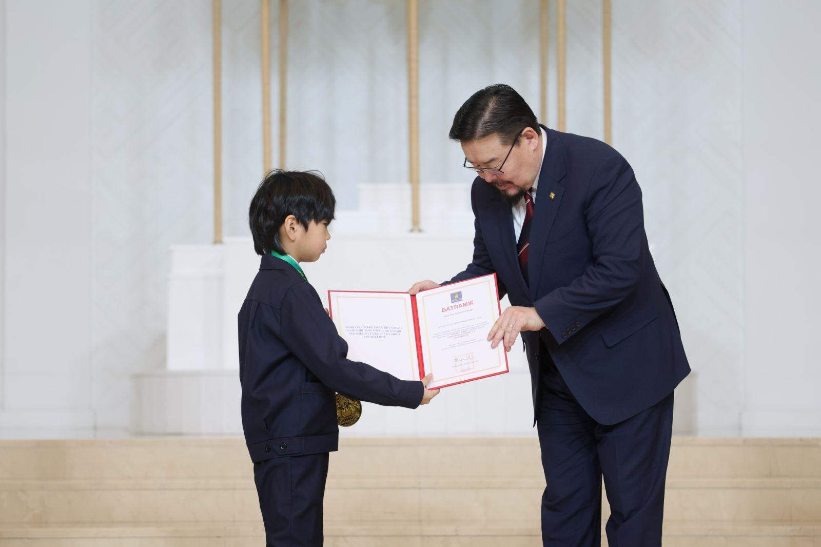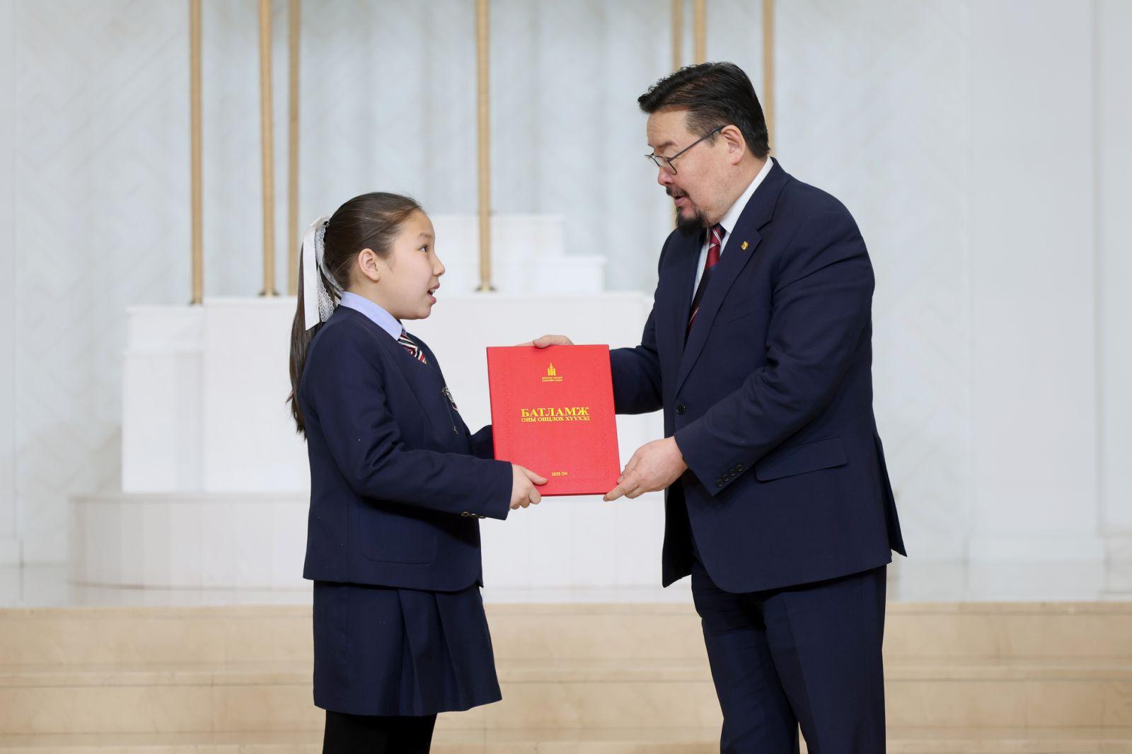 Монгол Улсын Ерөнхий сайд, Хүүхдийн төлөө үндэсний зөвлөлийн тэргүүн Гомбожавын Занданшатар оны онцлох хүүхдүүдэд шагнал гардууллаа.