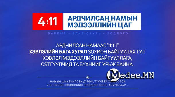 4/11: Ардчилсан намын Улс төрийн зөвлөлийн хурлаас гарсан шийдвэр, намын дотоод зохион байгуулалтын асуудлын талаар мэдээлнэ