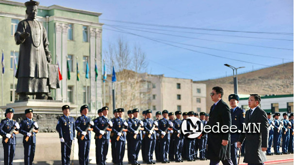 Монгол Улсын Ерөнхийлөгчийг Жалханз хутагт Ц.Дамдинбазарын нэрэмжит төв талбайд хүрэлцэн ирэхэд Улиастай цэргийн хүрээний хүндэт харуул угтаж авлаа.