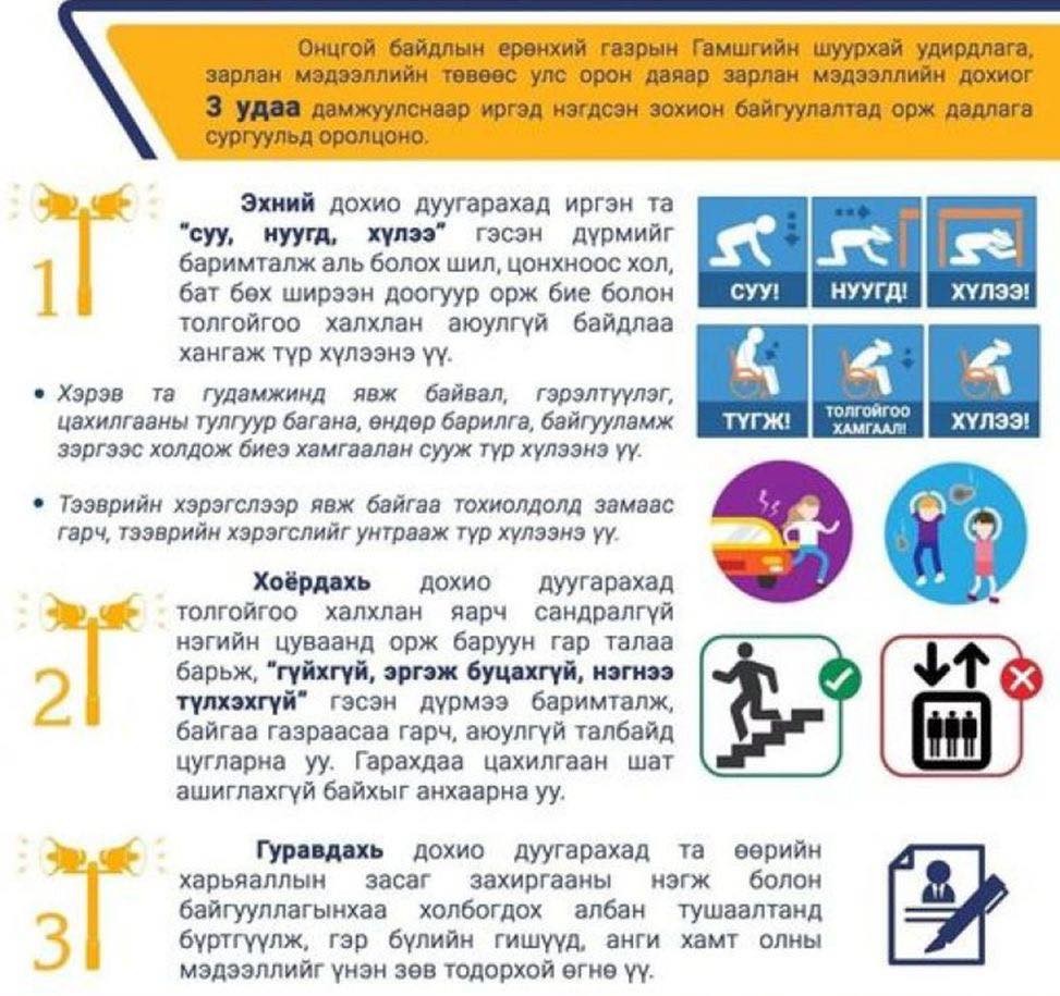 Дараах зөвлөмжийг дагаж дадлага сургуульд идэвхтэй оролцохыг Нийслэлийн Онцгой Байдлын Газраас уриалж байна.
