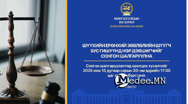 Шүүхийн ерөнхий зөвлөлийн шүүгч бус гишүүнд нэр дэвших тухай хүсэлт хүлээн авч байна