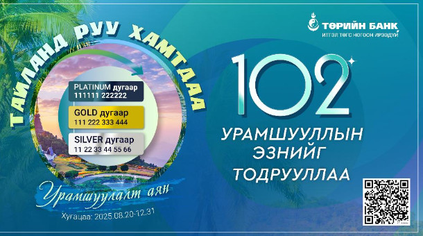 Төрийн банк Монгол Улсын өнцөг булан бүр дэх хоёр сая гаруй харилцагч иргэд болон аж ахуйн нэгжүүдийнхээ харилцах, хугацаагүй хадгаламжийн дансыг идэвхжүүлэх зорилгоор 396 азтантай “Тайланд руу хамтдаа” урамшуулалт аяныг наймдугаар сарын 20-ноос 12 дугаар сарын 31-ний өдрийг дуустал дөрвөн үе шаттай зохион байгуулж байгаа билээ.