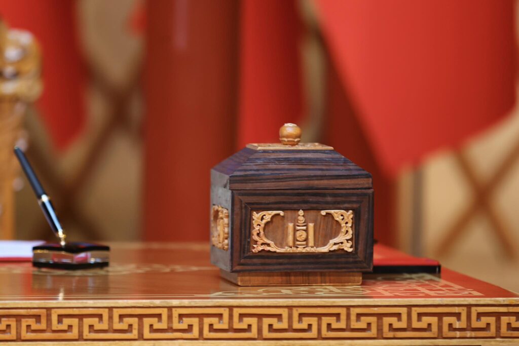 Зарлигийг уншиж сонордуулсны дараа Монгол Улсын Ерөнхийлөгч Ухнаагийн Хүрэлсүх, Монгол Улсын Ерөнхий сайд Гомбожавын Занданшатар нар зарлигт гарын үсэг зурлаа.