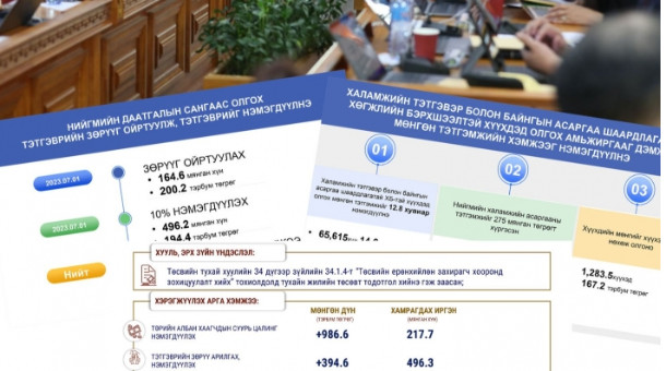 Хөгжлийн бэрхшээлтэй, байнгын асаргаа шаардлагатай хүүхдэд олгох тэтгэмжийг 12.8 хувиар нэмэгдүүлэх бөгөөд үүнд 17.5 тэрбум төгрөг шаардлагатай. Мөн нийгмийн халамжийн асаргааны тэтгэмжийг 275 мянган төгрөгт хүргэснээр 72.4 тэрбум төгрөг хэрэгтэй. Өөрөөр хэлбэл, тэтгэмжид хамрагддаг 144.4 мянган хүнд 89.3 тэрбум төгрөг зарцуулах юм. Мөн хүүхдийн мөнгийг хүүхэд бүрт олгож эхлэх бөгөөд оны эхнээс авч чадаагүй хүүхдүүдийнхийг нөхөж олгоно хэмээн Засгийн газрын хуралдаанаар шийдвэрлэлээ. Тиймээс нийт 1.3 орчим сая хүүхдэд 167.2 тэрбум төгрөгийг олгох нь ээ.