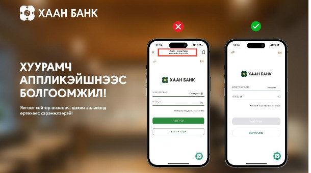 ХААН Банкны хувьд цахимаар бүтээгдэхүүн болон зээлийн үйлчилгээ санал болгохдоо албан ёсны вэбсайт болон page хуудсаараа дамжуулан мэдээлдэг бөгөөд хувийн ямар нэг нууцлалтай мэдээлэл оруулахыг шаардсан холбоос бүхий мэдээлэл түгээдэггүй билээ.