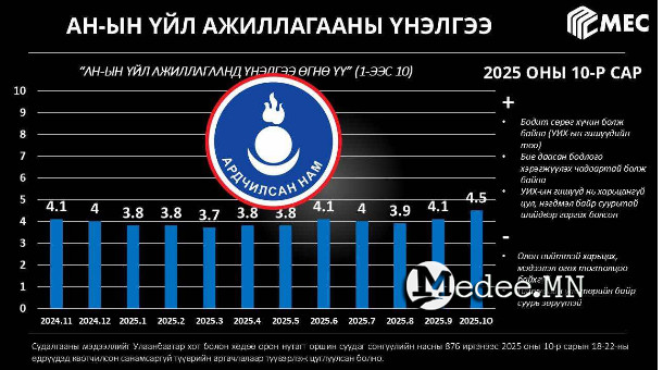 МЕС судалгааны байгууллагаас сар бүр гаргадаг улс төрийн барометр судалгааны дүнг өчигдөр (2025.10.24)-нд зарлалаа. Судалгаанаас харахад сүүлийн зургаан сарын турш нийгмийн сэтгэл зүйд ажиглагдаж буй суурь ойлголт баталгаажиж эрх баригч МАН-д итгэх итгэл хүчтэй суларсаар байна.
