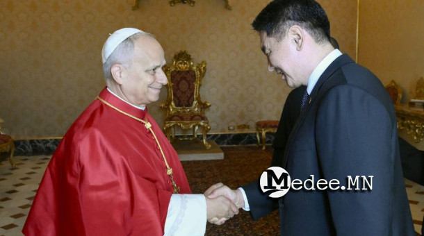 Ерөнхийлөгч У.Хүрэлсүх тус улсын төрийн тэргүүн, Пап Арвандөрөвдүгээр Лео нар албан ёсны уулзалт хийлээ