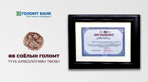 Уг шалгаруулалтаар Голомт банкнаас санаачлан хэрэгжүүлж буй “Өв соёлын голомт” төслийн хүрээнд Булган аймгийн Хар толгой болон Ингэт толгойн дурсгалт газарт хийсэн археологийн малтлага судалгааны ажил Тэргүүн байр эзэлж, оны шилдэг судалгаагаар нэрлэгдлээ.
