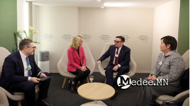 Швейцарын Давос хотноо болж буй Дэлхийн эдийн засгийн чуулга уулзалтад оролцож байгаа Монгол Улсын Ерөнхий сайд Г.Занданшатар Олон улсын цахилгаан холбооны байгууллагын (ОУЦХБ) Ерөнхий нарийн бичгийн дарга, хатагтай Дорийн Богдан Мартыг хүлээн авч уулзлаа.