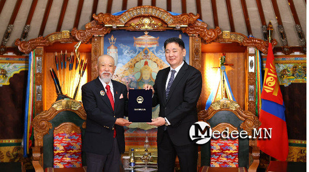 Ерөнхийлөгч У.Хүрэлсүх “Ниппон сан”-гийн хүндэт тэргүүн Сасакава Ёохэи-г Хөдөлмөрийн гавьяаны улаан тугийн одон, тус сангийн тусгай зөвлөх Мори Юүжи-г Алтан гадас одонгоор шагналаа.